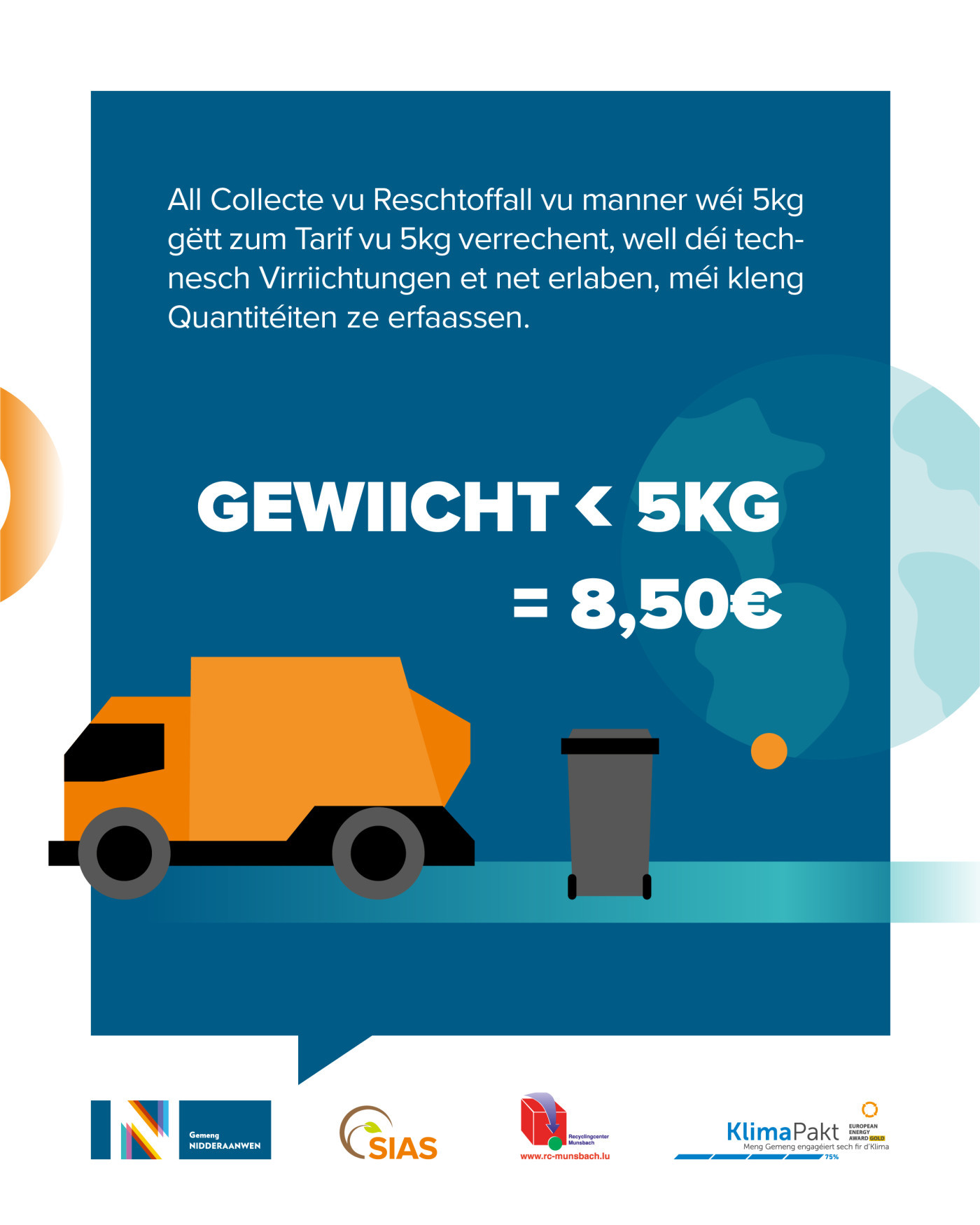 Mit dieser Auszeichnung wurde unser nachhaltiges, engagiertes und zukunftsorientiertes Handeln im Bereich der Energiewende gewürdigt – insbesondere durch die Aktion „Nidderaanwen isoléiert lo“, verschiedene Photovoltaikprojekte sowie den deutlichen Anstieg von Photovoltaikanlagen auf privaten Gebäuden.