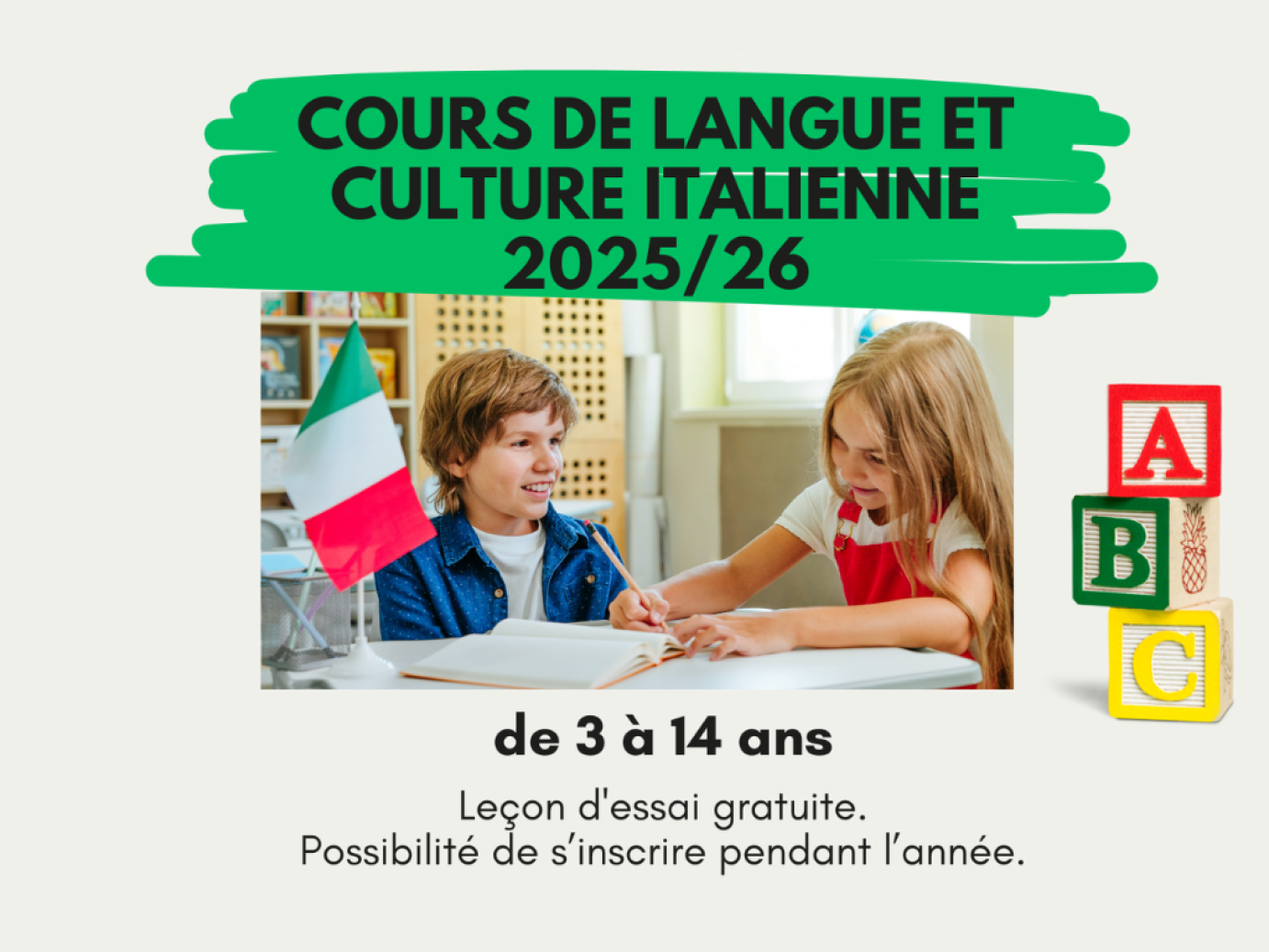 Avec la rentrée scolaire 25/26, les cours d’italien pour enfants sont de retour samedi le 27 septembre!