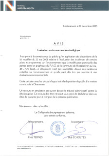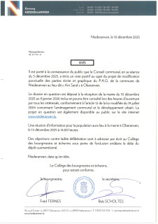 Avis - Projet de modification ponctuelle de la partie graphique du P.A.G. au lieu-dit "Rue Principale" à Ernster