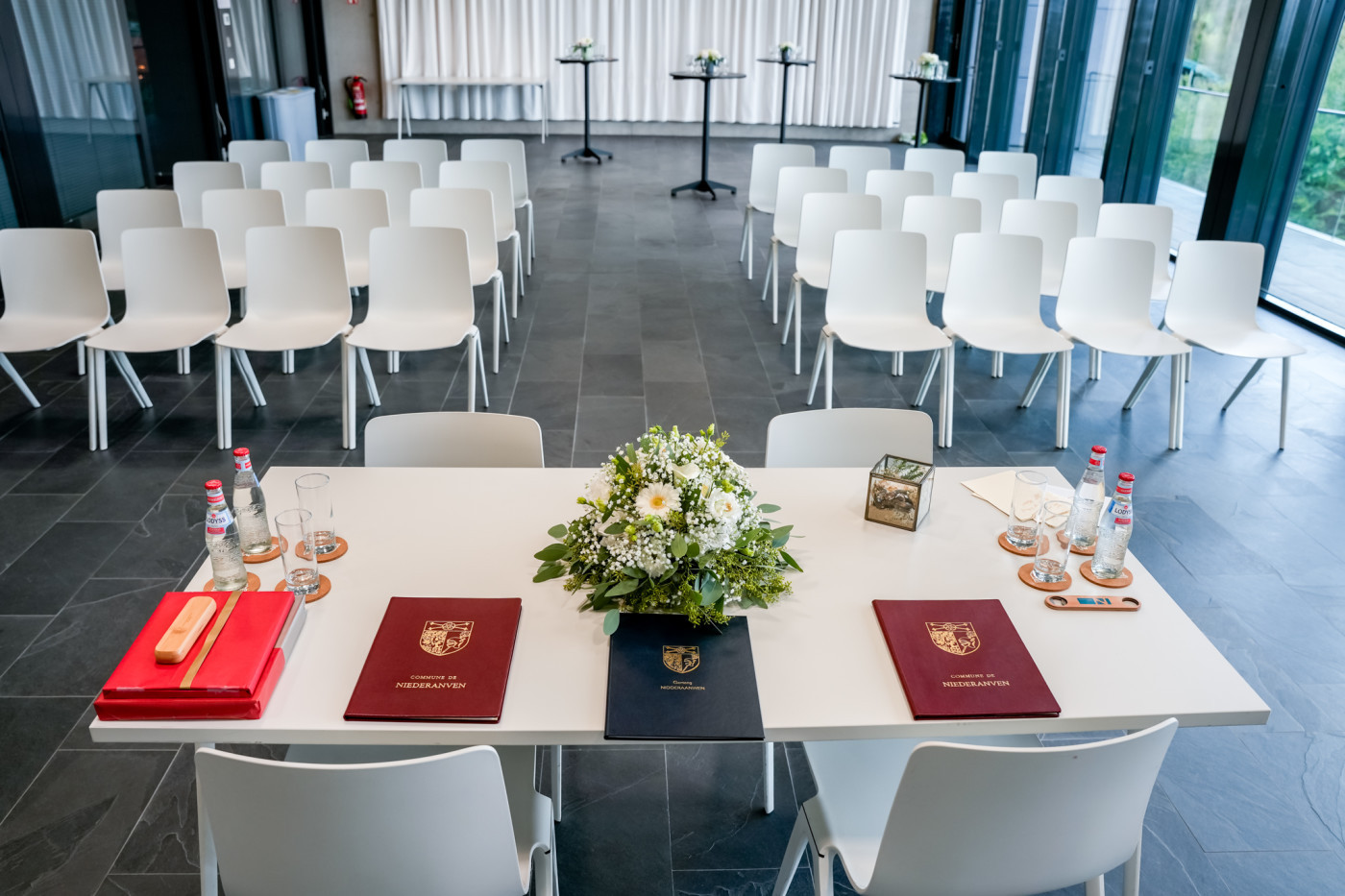 An der Gemeng Nidderaanwen fënnt déi zivil Hochzäit normalerweis am Hochzäitssall vun der Gemeng zu Ueweraanwen statt. Zënter enger Decisioun vum Gemengerot vun 2023 ass et awer och méiglech, op Ufro, am Europapark zu Ueweraanwen oder am Centre polyvalent "A Schommesch" zu Ueweraanwen bestuet ze ginn. Fir weider Informatioune kënnt Dir gären de Populatiounsbüro kontaktéieren.