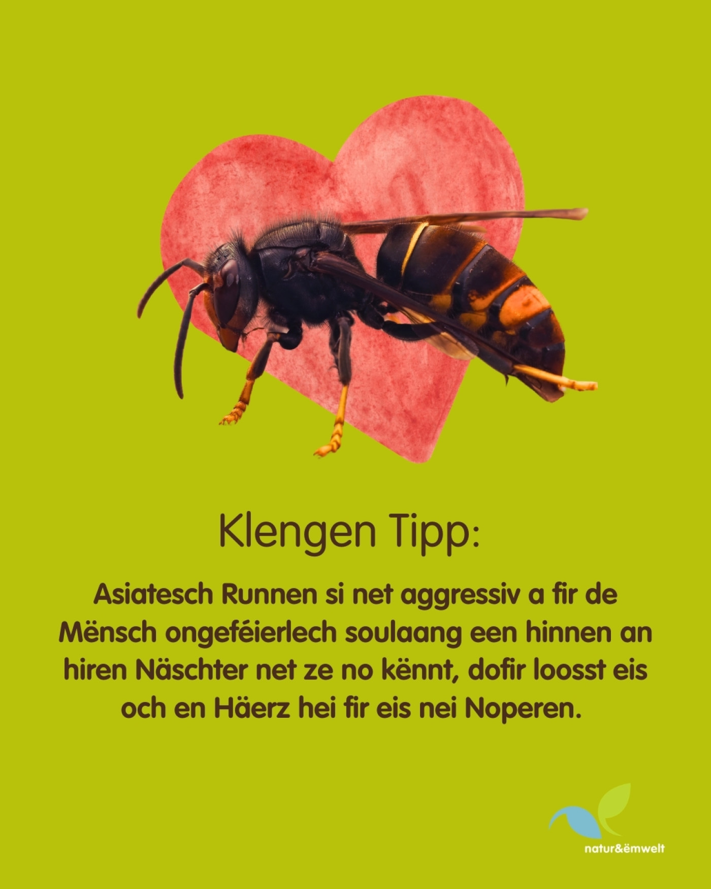 D'Asiatesch Runn huet sech fest zu Lëtzebuerg etabléiert. Dofir invitéiere mir Iech, den neien Infopost vun natur&ëmwelt ënnert d'Lupp ze huelen. Hei gitt Dir alles iwwert d'Ënnerscheeder tëschent der Europäescher an der Asiatescher Runn gewuer!