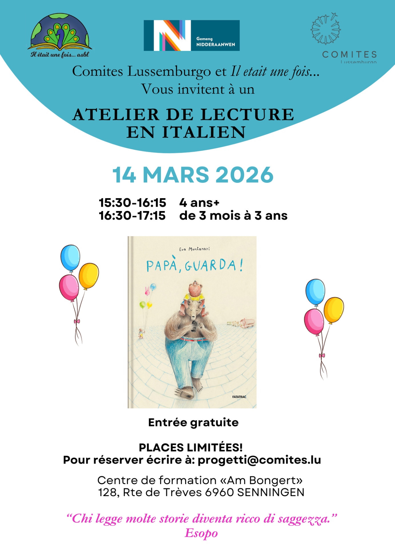 Atelier gratuit, avec inscription obligatoire: progetti@comites.lu