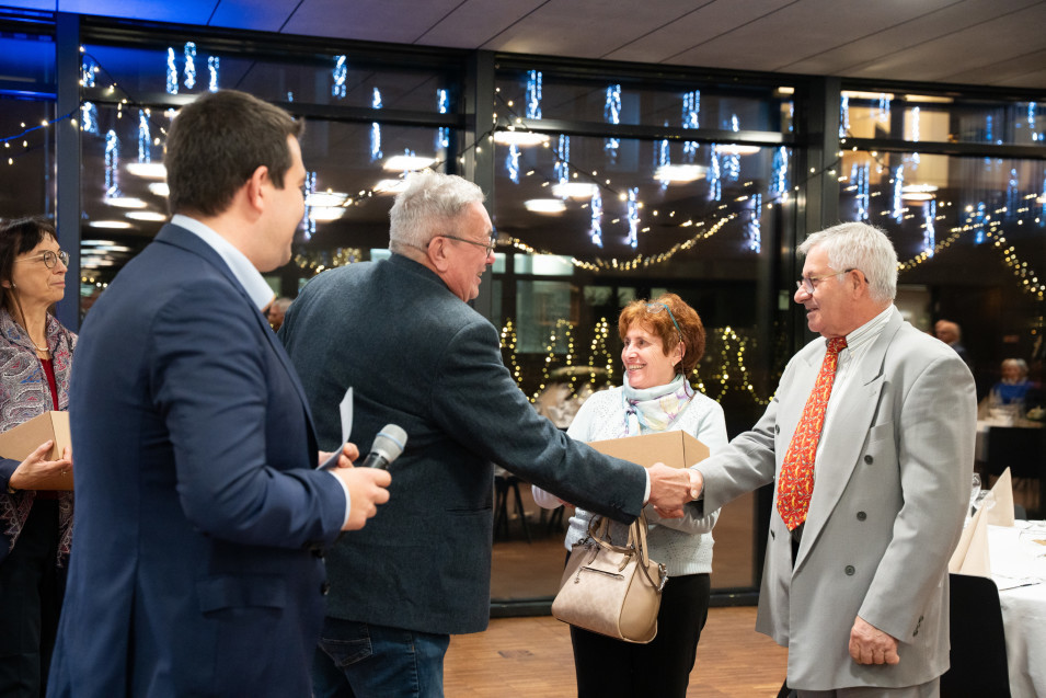Verëffentlecht den 19.12.2025De Mëttwoch, 17. Dezember 2025, huet de Schäfferot all déi Koppelen an der Gemeng, déi dëst Joer 50. Bestietnis feieren, op d'Gëllenhochzäitsfeier agelueden. 11 Koppele sinn der Invitatioun nogaangen an hunn zesumme mam Schäfferot an de Gemengeconseilleren e schéinen Owend verbruecht.
